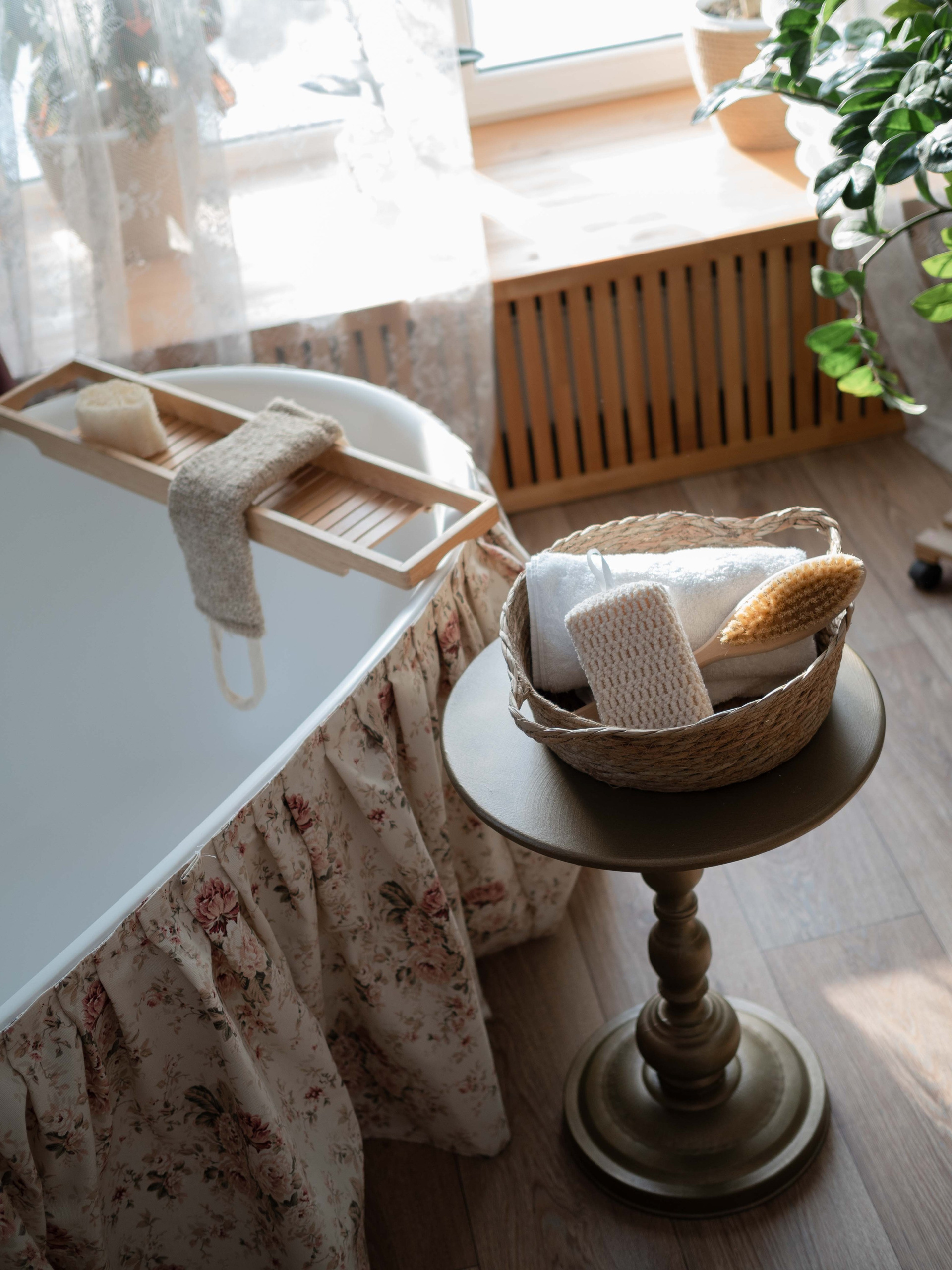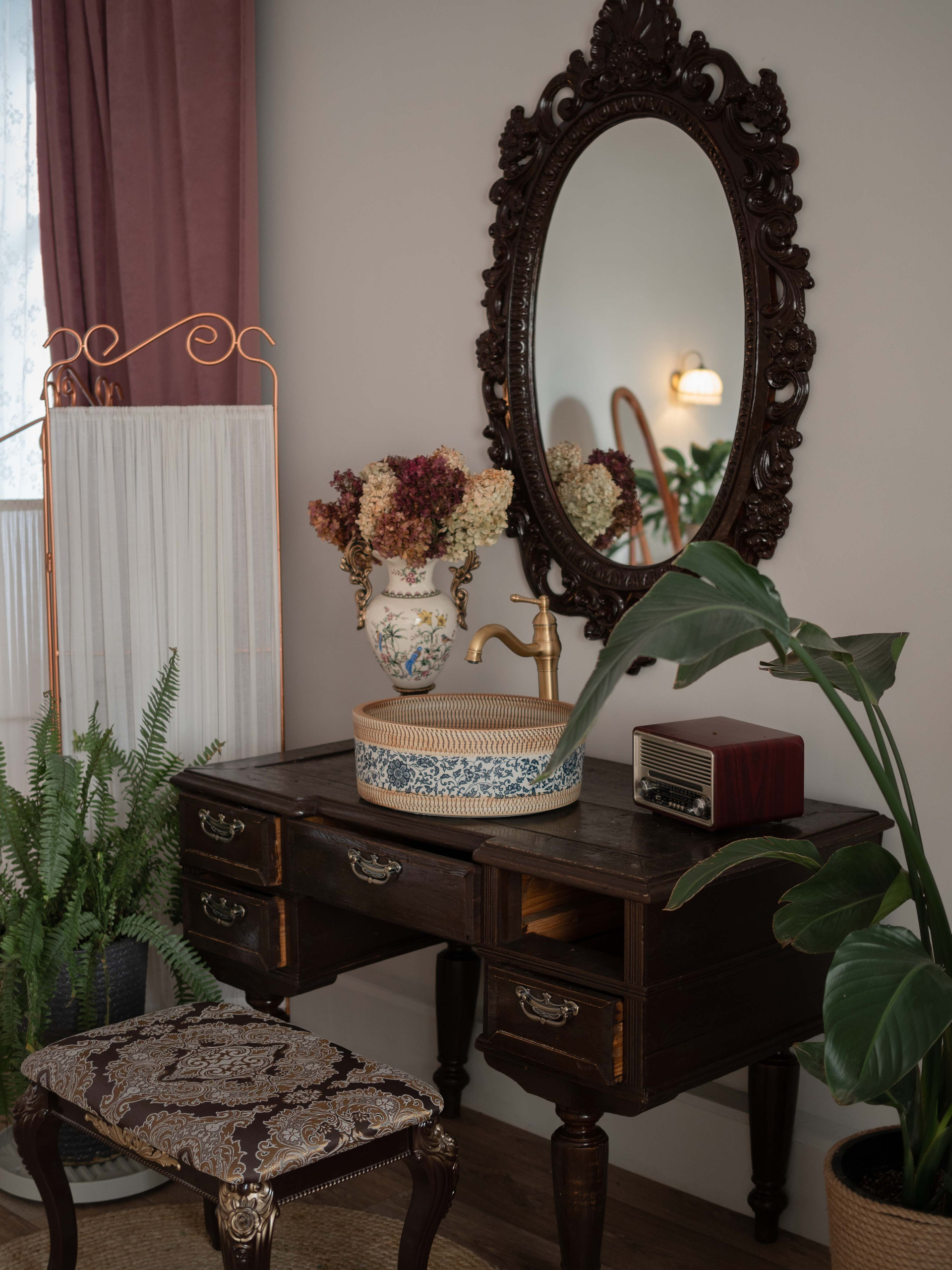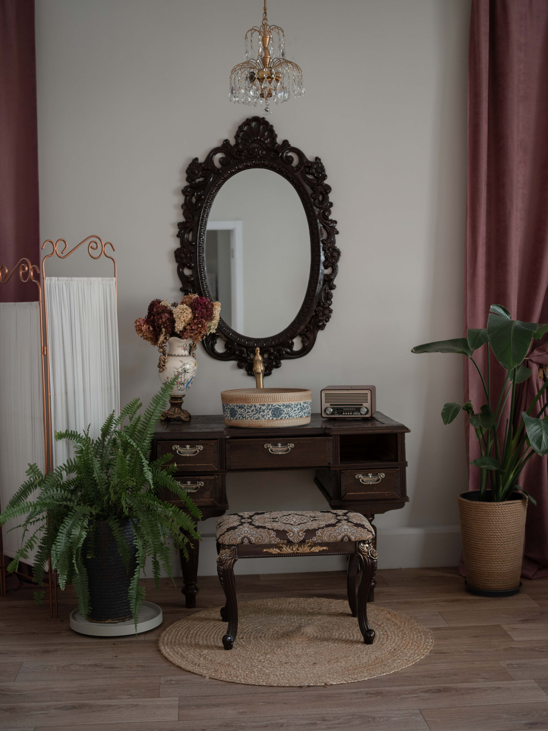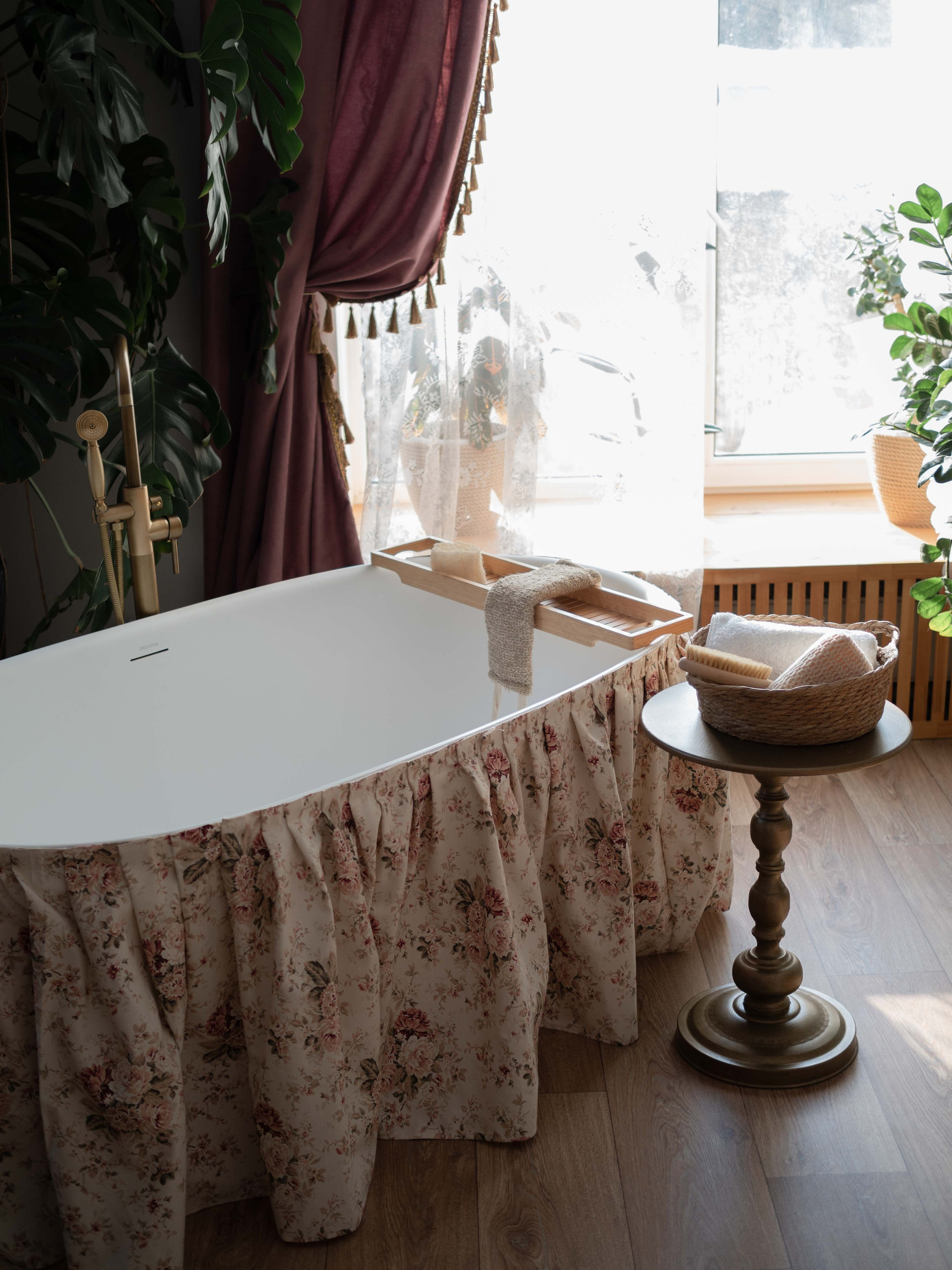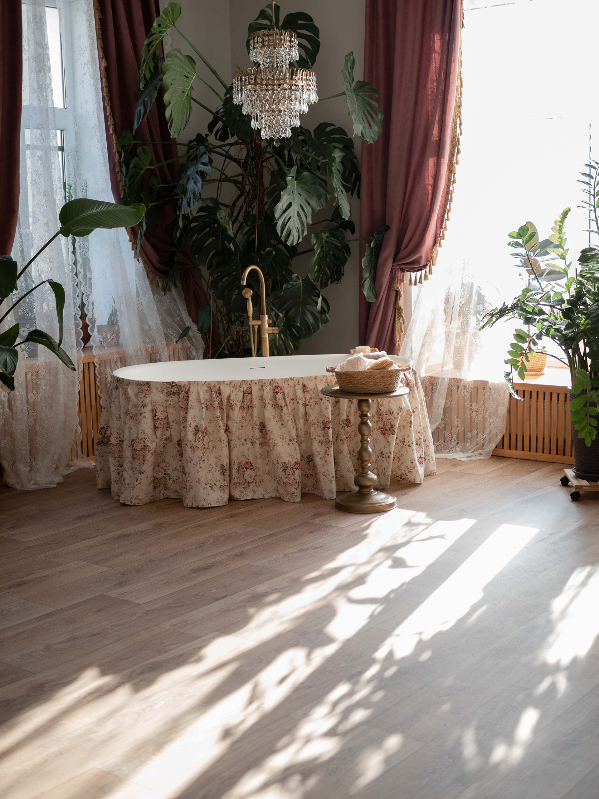 • Полностью функционирующая ванная окруженная крупными интерьерными растениями