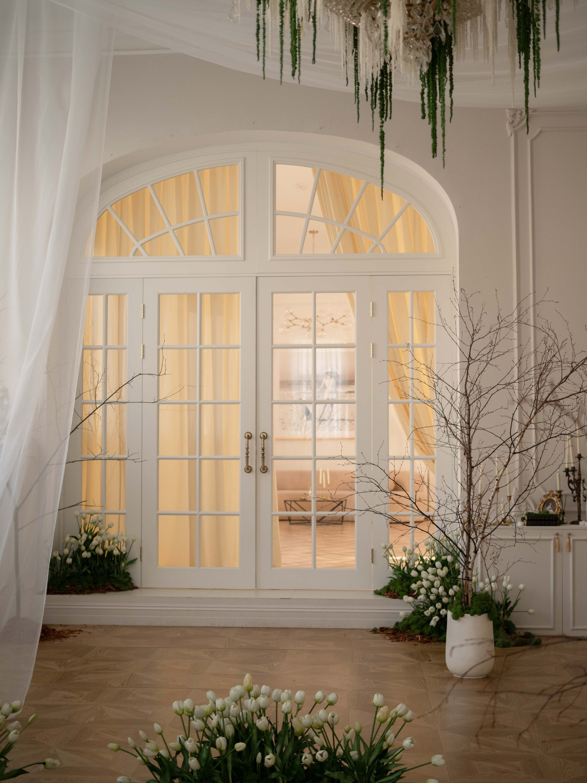 Если для вас важно, чтобы арочная дверь была полностью в вашем распоряжении и гарантированно свободна, рекомендуем бронировать два зала одновременно: Версаль + Шарм.